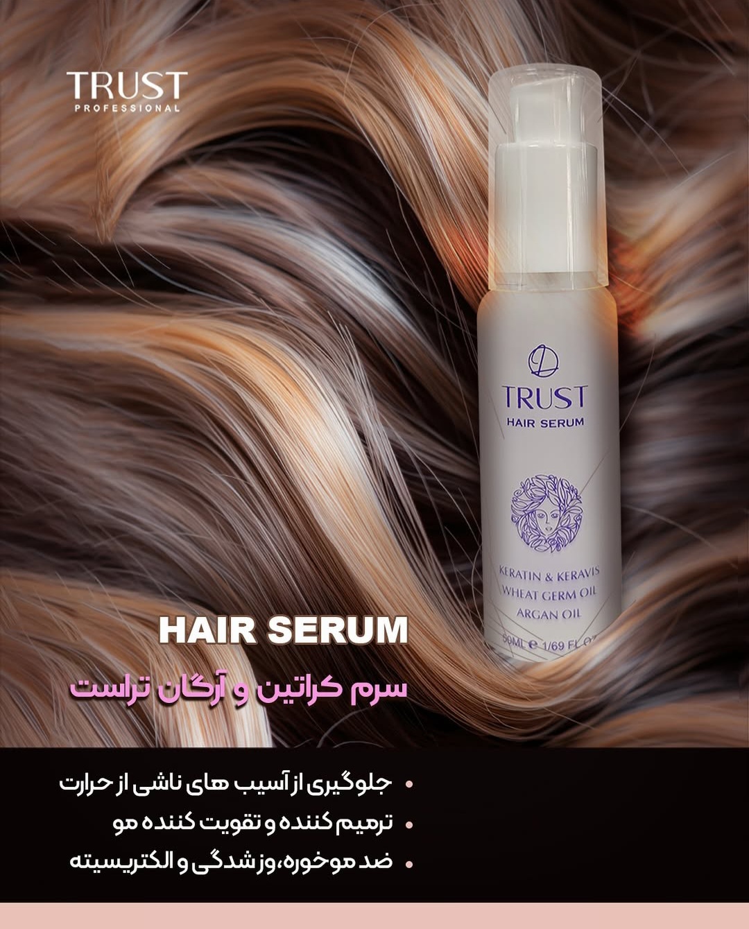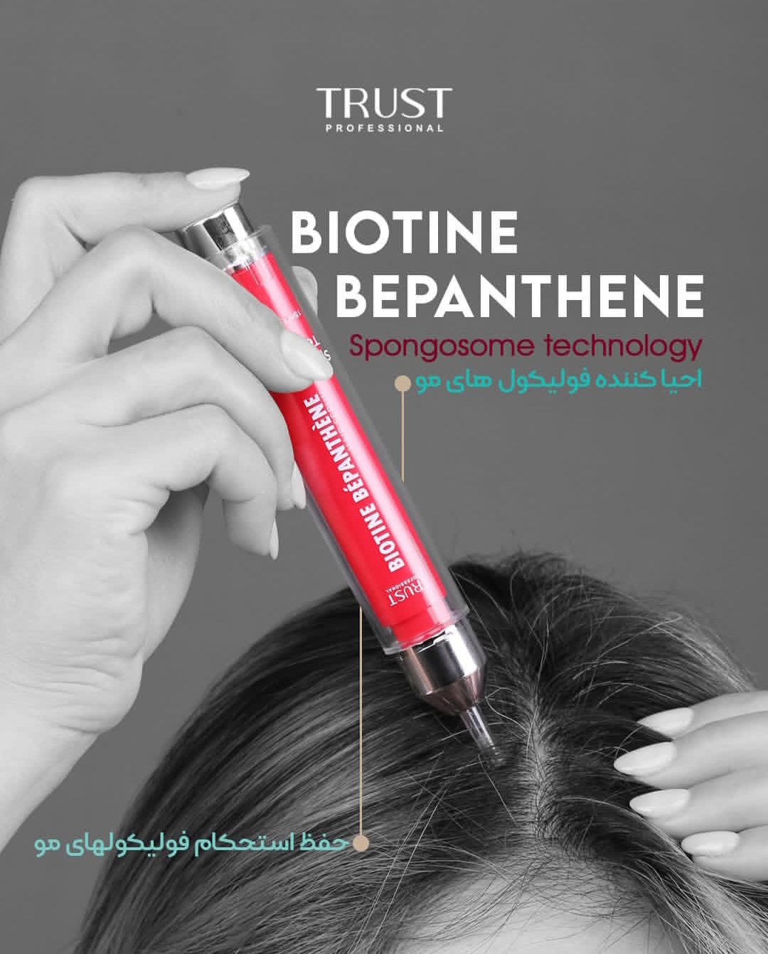 ✳️ "سرم بهبود دهنده ریزش موی سکه ای تراست"، با دارا بودن تکنولوژی ممتاز و منحصر به فرد اسپانجوزوم، به طور موثری نفوذ ترکیبات موثره ضد التهاب و محرک رویش مجدد فولیکول های مو را به سلولهای پوست سر افزایش داده و به طور چشمگیری موجب بهبود رشد فولیکول و تحریک رشد موها در این ناحیه میشود.
